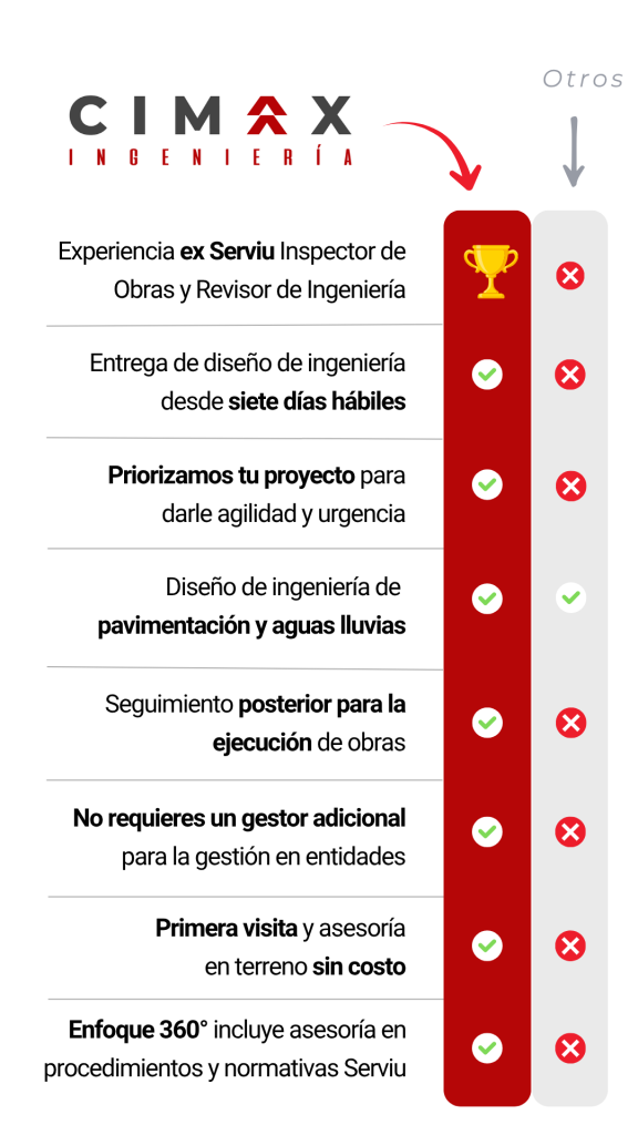 Proyectos de pavimentación y aguas lluvias, en vías cuya tuición sea. Serviu o MOP.